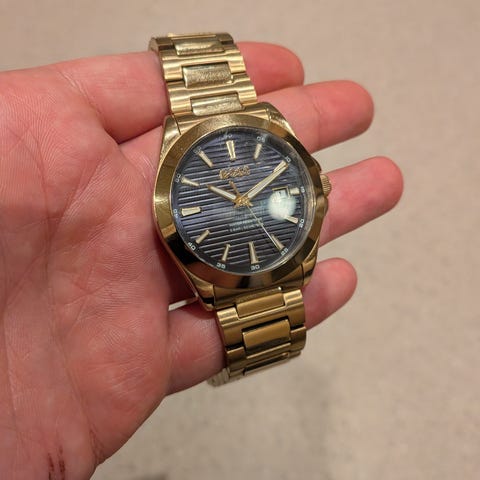 Stilfull og elegant gull belagt klokke fra Boss