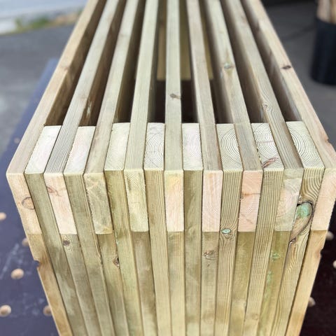 Balansestokker i robinia som er værbestandig, absorberer lite vann og er ekstremt holdbart.