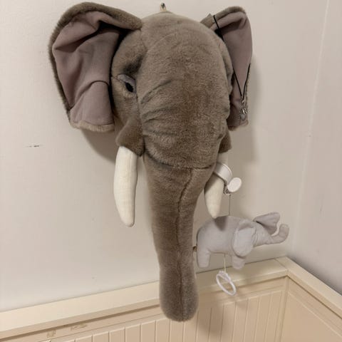 Søkeord: barneromsdekor, tredekor, elefant i tre, håndlaget barneromsinteriør, veggpynt barnerom, treskilt, dekorasjon barnerom