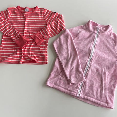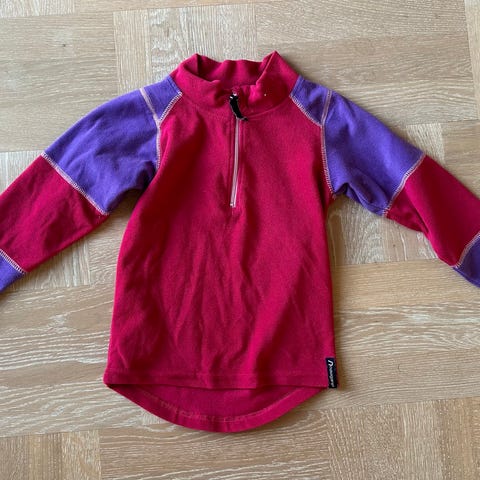 Pent brukt jakke fra Vill i mørk rosa med gule og hvite detaljer. Str. 5-6 år. Selges sammen med ulltrøye. Denne har et bittelite hull, se bilde.