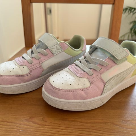 Selger et par Puma Fun Racer AC PS joggesko i str 32. Skoene er små i størrelsen så opplever de mer som str 31. Lengden på innersålen er 20,5 cm.