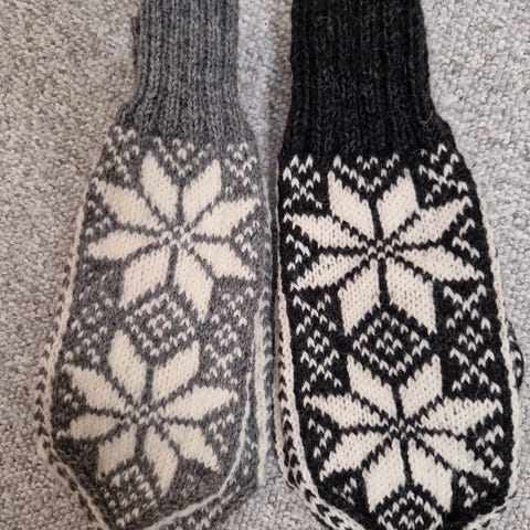 Ubrukte, grå melerte ullsokker selges. De har lagt lenge i ett skap, men de kommer aldri til å bli brukt, så selger dem billig.