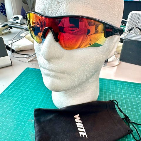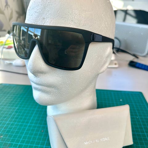 Jätte tuffa solglasögon. Det är några hår fina märken på glaset som inte påverkar synet alls.