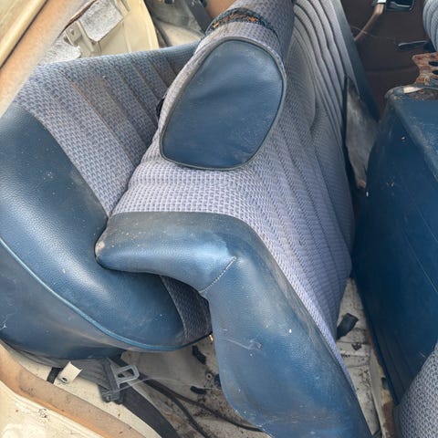 Godt brukt interiør. Ska være nogenlunde komplett foruten om dørtrekk, ein rens og litt småfiks, så funker det nok. Stått i bil fram til nå. Selges 3000 ell bud.