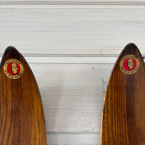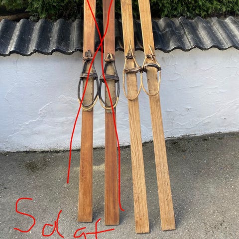 et par gamle treski, laget på Drammens Skifabrikk! Skal tro hvem disse skiene har tilhørt?