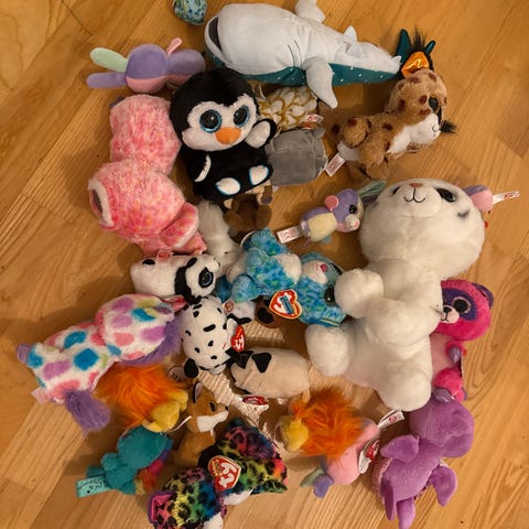 8 Ty-bamser selges samlet for 250 eller 35 per stk for de minste og 100 kr per stk for de største. Alle er pent brukt fra røykfritt/dyrefritt hjem.