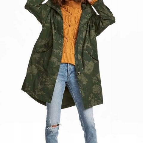 Jakken er vendbar og kan brukes på begge sider – den har et kult kamuflasjemønster på den ene siden og et dyremønster på innsiden.