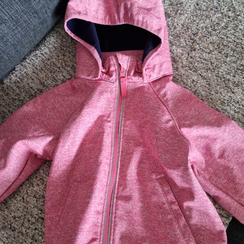 Selger en hettegenser med glidelås i størrelse 128 (ca. 7–8 år), laget for jente. Myk og behagelig genser med hette og lommer, passer fint til både skole, fritid og lek.