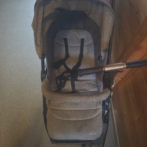 Brukt til et barn til byturer og dyrepark etter at "babyvognen" ble solgt i 2-3års alder. Vanlig bruksslitasje. Den ene selen over skulderen er litt knukket. Så ikke optimalt om man må bruke selen. Vi brukte bare den delen som er rundt hoftene vi etter den knakk.(5 punkts sele)