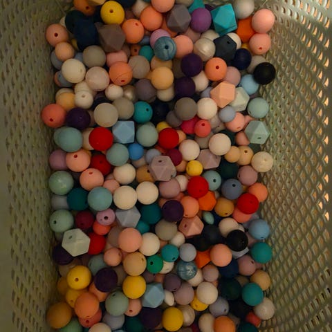 Pakken inkluderer masse forskjellige perler, tråder gaveesker, perlekarusell mm.