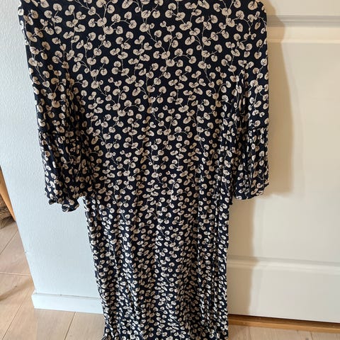 Pent brukt GANNI kjole str 34 selges. Fin å bruke slik den er, eller man kan ta et belte rundt midjen dersom du vil ha en litt annen stil. Det følger ikke med noe belte. Hentes i Tromsø eller sendes.