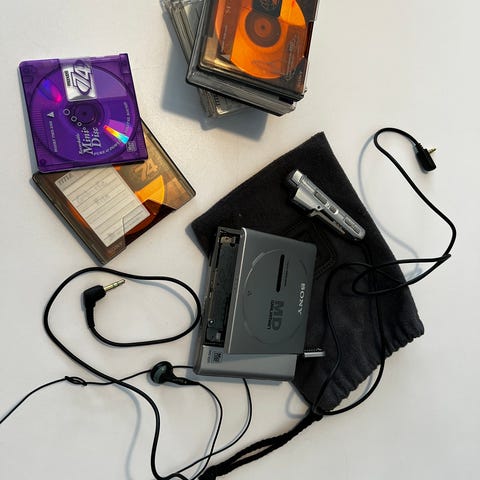 Følger med et par Sony Ørepropper, 3 stk minidisker og original strømadapter.