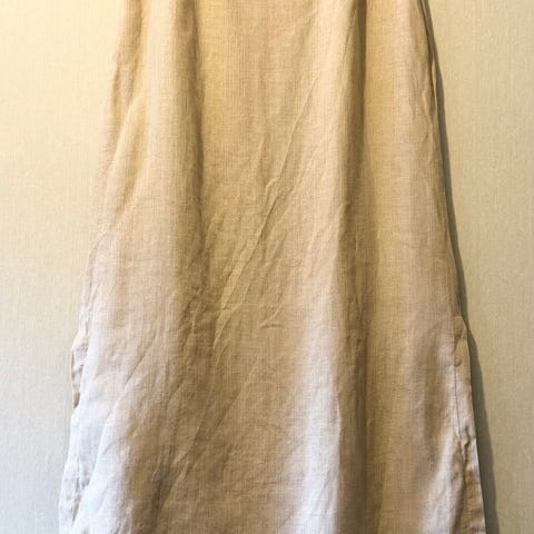 Vintage, trolig hjemmesydd og i lin. Veldig fint fall og sommerlig. Kan brukes av medium om man har det nede på hoftene, ellers passer det nok en large