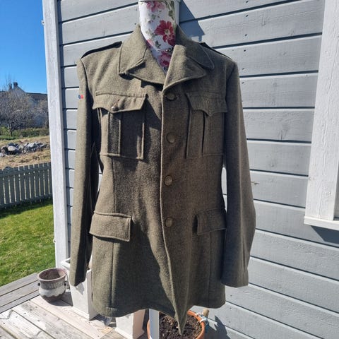 To godt brukte, men hele uniformsjakker fra hæren i størrelse 50 Lang selges. Pent brukte.