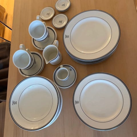Selger en del servise deler av nathalie platinum fra porsgrund porselen. Noen av asjettene er slitt på platina kanten men ellers er de hele og fine. Selges under halv pris. Pris pr del står på bildene eller kan selges samlet for 5000 kr.
