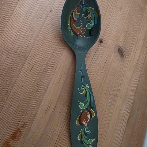 Rosemalt sleiv, ca. år 1900. Kan pakkes godt og sendes. Lengde: 36 cm.