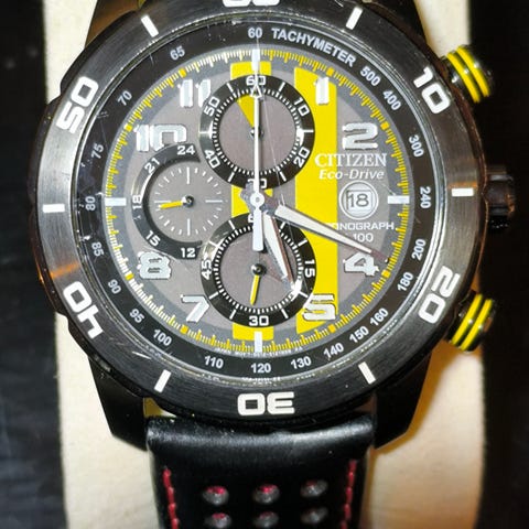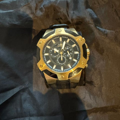 Stilig Invicta klokke med cool navn FORCE. Svart skive ,hvite indekser og visere i kombinasjon med gule sekundvisere gjør klokke veldig tøff . Svart kasse 45 mm brede uten krone