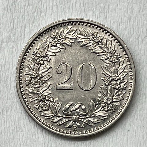 Switzerland 🇨🇭 Sjeldent sveitsisk 20 rappen mynt fra 1970