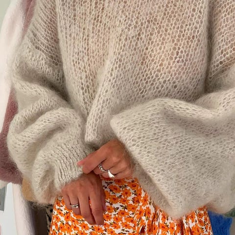 Milana LS Mohair Knit fra American Dreams. Milana er American Dreams' ikoniske mohairstrikk. Den er designet med kjærlighet i København og laget med omtanke rundt alle detaljer i Italia. Milan er strikket i en lett og luftig mohairmiks - som gjør den til den perfekte sommerstrikken! Genseren har løse ermer med ribbestrikkede mansjetter, lav skuldersøm, V-hals og en oversized passform. Vi elsker denne freshe fargen, og bruker den til alle vårens og sommerens antrekk.