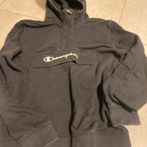 Kul hettegenser med lomme på magen og glidelås i halsen.