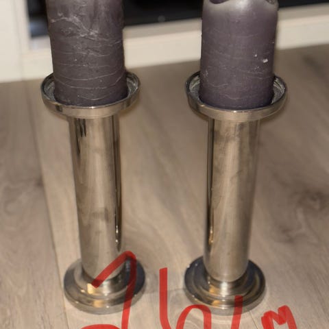 Flott tyngre lysestake i fargen sølv. Ca 15 cm høy.