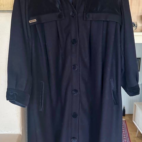 Ullkåpe fra rundt 60-70 tallet. Litt usikkert. Merke er Levre of London str 44. Veldig pent brukt. Hel og pen. Selger da den er arvet og for stor for meg