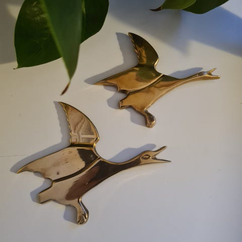 2 stk Messing fugler | dekorasjon til vegg | hytte