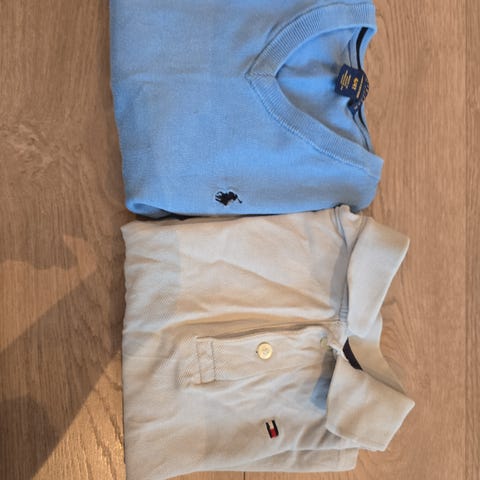 Nydelige t-shorter & gensere fra de kjente merkene Tommy Hilfiger, Ralph Lauren & Calvin Klein. Begynner på størrelse 104 & går opp til størrelse 122. Mye er nytt med merkelappen på, en del er nytt, men uten merkelapp & noen få plagg er brukt. Se informasjonen nedenfor.