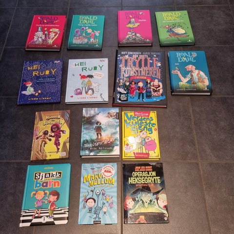 Rydder plass til nye bøker og selger samlet 24 barnebøker i veldig fin stand samlet til 600,- Må hentes da vekten blir høy ved forsendelse. 25,- per bok i denne pakken. Varierte bøker, passer både for jenter og gutter som øver på å lese, eller nylig har lært å lese (6-9 år). Alle kan søkes opp på Ark el for nærmere beskrivelse. Alle bøker er innbundet, med unntak av en pocket.