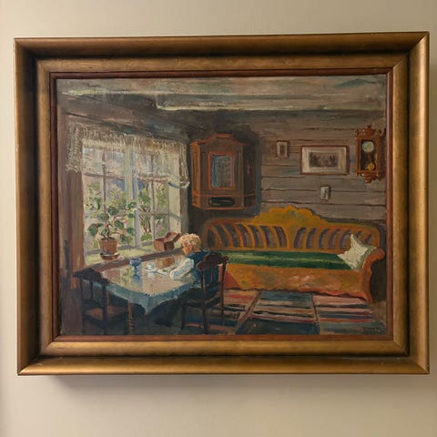 Maleri av Lars Jorde ( 1865-1939) fra Lillehammer. Bildet måler 64/74 og er malt i 1910. Bildet er taksert hos Blomqvist og fått en vurdering på 20 000,-(Noe skader på ramme i underkant.)