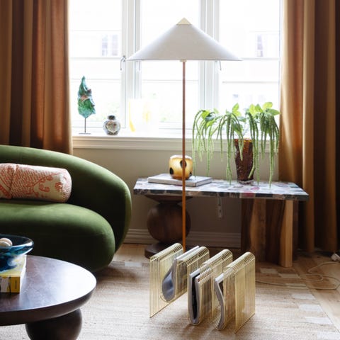 Pent brukt stålampe fra Gubi. Ikonisk lampe lansert 1950 av Greta M Grossman. Svart ru overflate og messing. Selges kr 6000