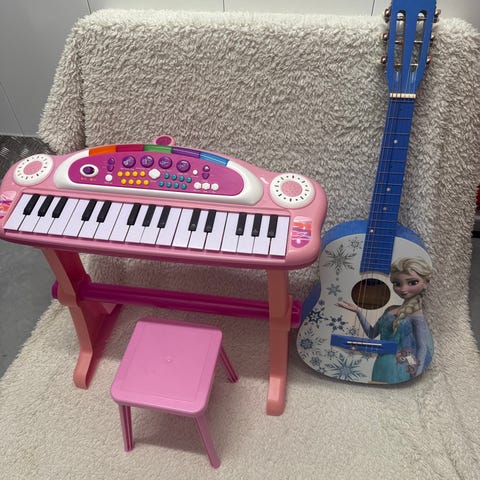 Disney Frozen musikkinstrumentsett for barn. Settet inkluderer ulike instrumenter med motiver fra Frozen-filmen. Instrumentene er laget i plast og kommer i farger som blå og lilla. Passer for barn som liker musikk og ønsker å utforske ulike lyder.
