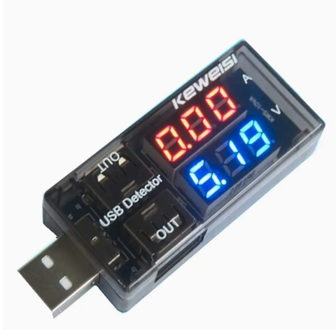 Praktisk USB-tester som viser spenning (V), strøm (A), mAh og mer – perfekt for å sjekke ladere, kabler og powerbanks.