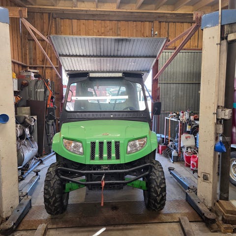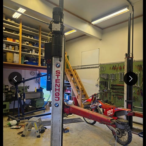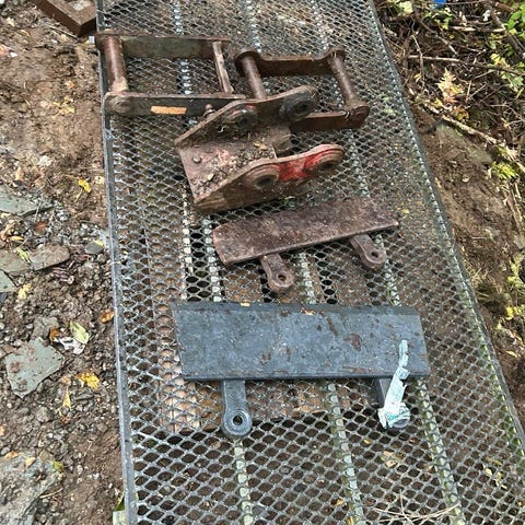 Stenhøj løftebukk for anleggsmaskiner selges. Fungerte da den ble demontert. Lagt ute under presenning i 2 år.