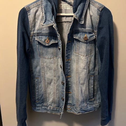 Jeansjakke er i str. 170. Liten brukt.