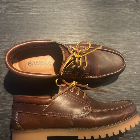 Samsonite mokkasiner i størrelse 43 for herrer. Disse skoene er laget av brunt skinn og har en klassisk design som passer til både formelle og uformelle anledninger. Sålene er slitesterke og gir god komfort ved bruk. Perfekte for daglig bruk eller spesielle anledninger.