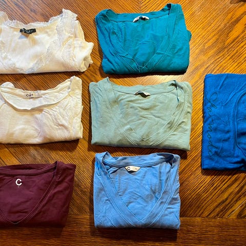 Klespakke med 5 pent brukte fine singleter selges samlet, str S