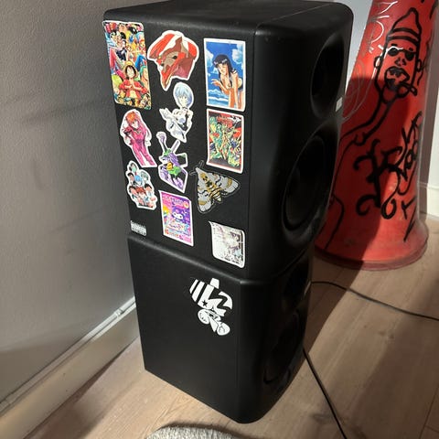 To små Pioneer høyttalere med subwoofer.
