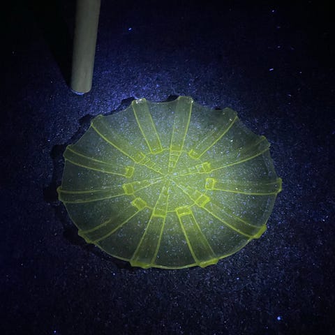 Vakker glass skål / fat i flott blå farge. Tror det er uranium glass men har ikke mulighet for å sjekke. Flott fasong 20cm i diameter. 4 cm høyt. Litt småmerker men ikke noe skjemmende