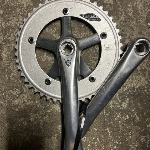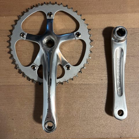 Selger et klassisk Sugino 75 NJS kranksett (170 mm) med ett 49T drev, perfekt for bane eller fixed gear.