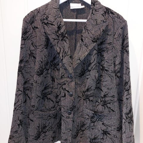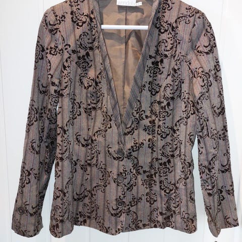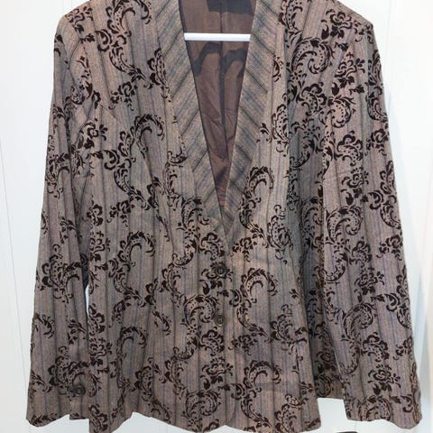 Lekker og myk velourjakke med spennende dyreprint og geometriske mønstre i varme farger. Modellen har V-utringning og lange ermer, og stoffet har en lett glans som gir en eksklusiv følelse. Perfekt både til hverdag og festlige anledninger.