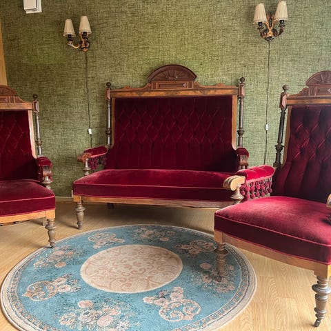 Antikk salong 2+1+ bord opptrukket i Alicantare