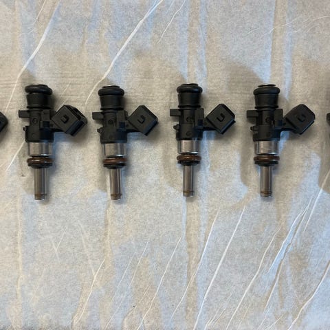 6 stk 2200cc dyser. De er 2 år gamle, lite brukt en sesong. Vært noe varme i bunn av de så plast stryring i bynn er litt deformert men er renset og testet etter det og fungerer som de skal. lagret dekket med wd40 når de ikke er i bruk. Med adaptere.