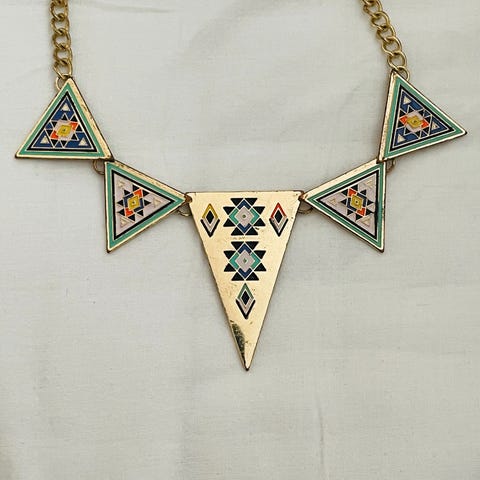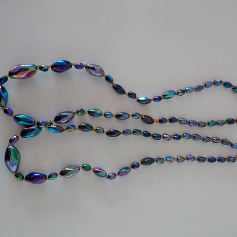Rundt Anheng blått / grønt Halskjede svart snor