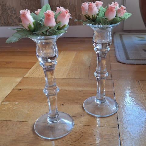 Pent brukt Lysestake og vase i glass selges. Vasen har et lite merker på seg som var der fra den var ny.