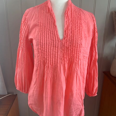 Søt bluse i lin fra det italienske merket 120% lino med søte detaljer i blonde🌿.