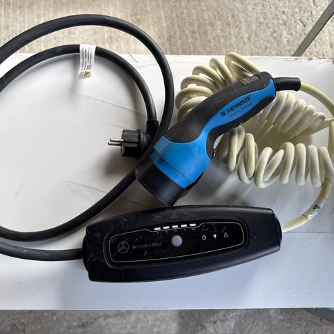 Laderen ser fysisk komplett ut med fast kabel.
