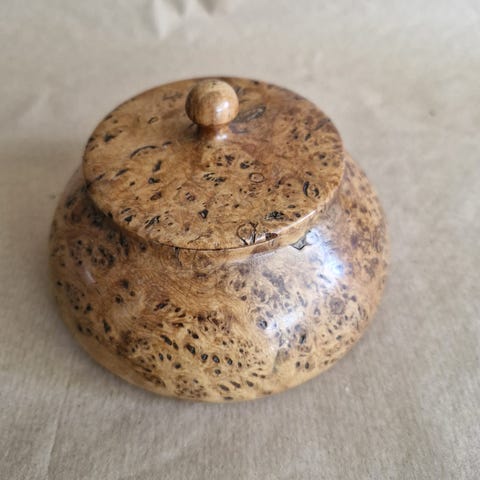 Håndlaget treboks med lokk.