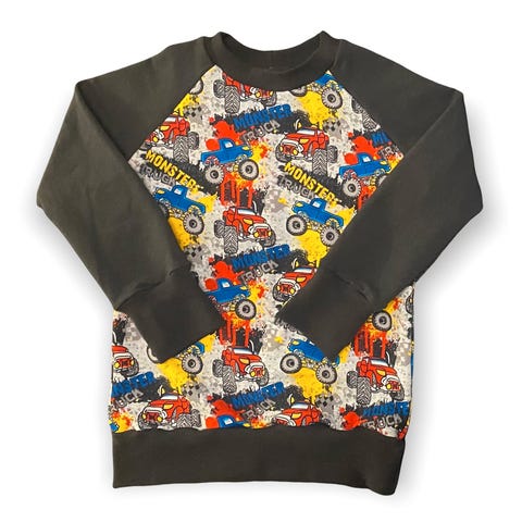 Tøff genser med racerbiler. Grå med blå biler. 95 % bomull, 5 % elastan. Kjempefin, ingen skader, ikke nupper.