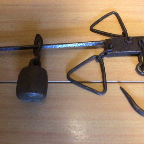 Gammel skikkelig tøff kjøttvekt på 4 ben. Litt rust og bærer preg av tidens tann. Tung og må hentes (og bæres av kjøper) i Romedal.